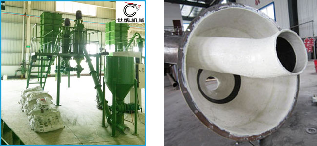 級機(jī),並且采(cǎi)用兩級串聯(lián)的方式,並且由於原料硬度比較大,設備內部采用陶瓷片進(jìn)行耐磨防(fáng)護。