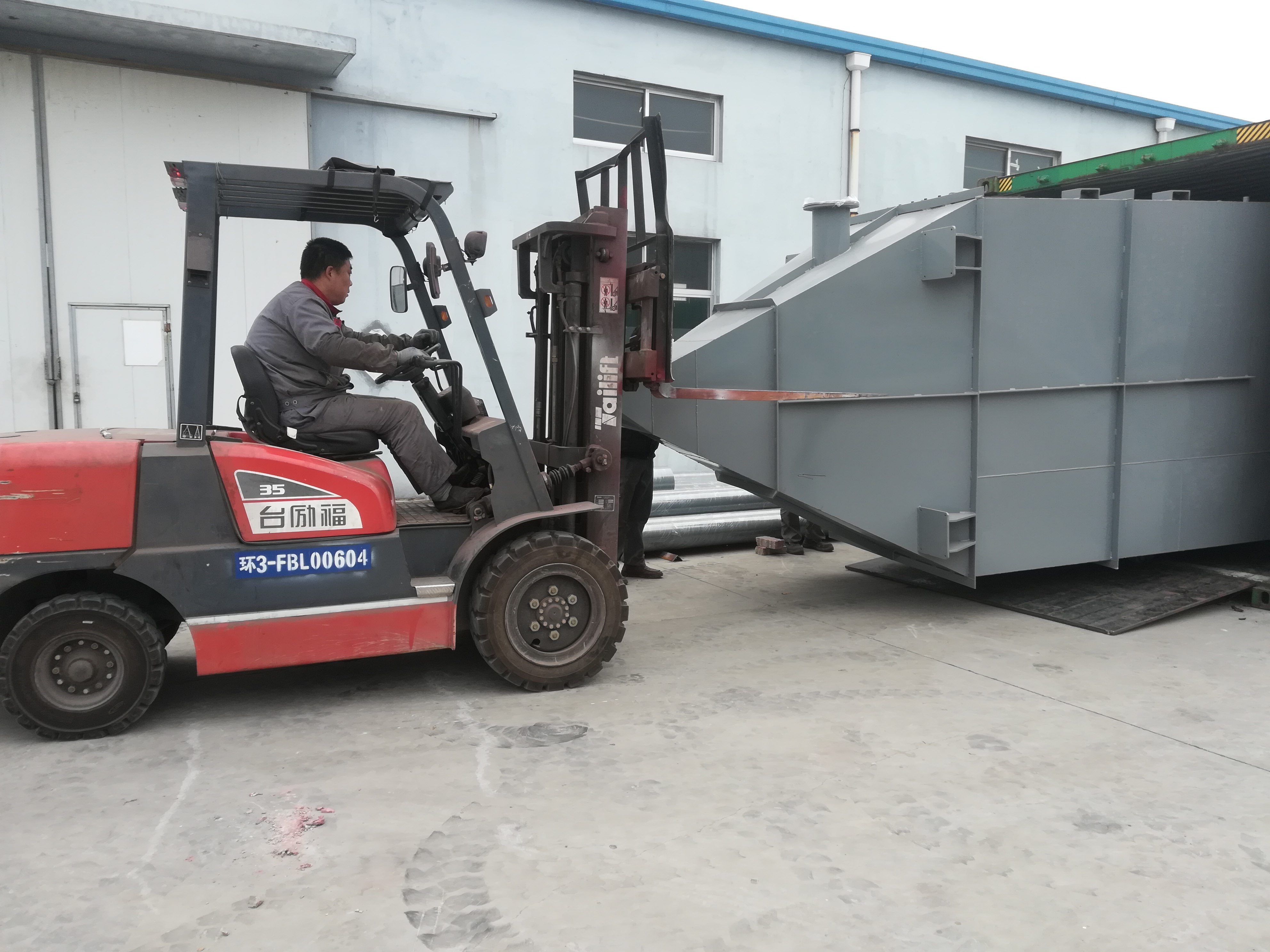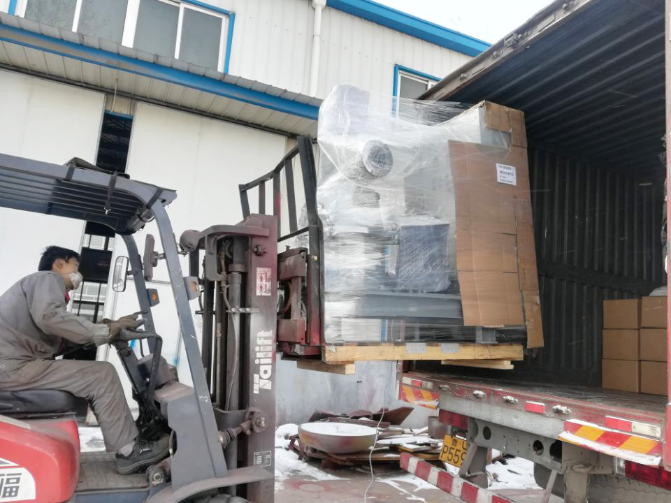 車間師傅(fù)們迎著冷冷的寒風,配合叉車,快速而有序的(de)裝貨。